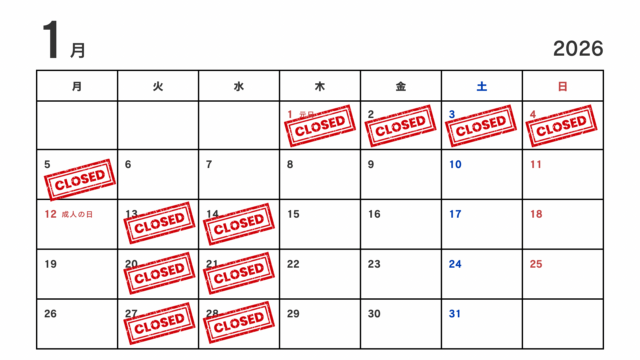2025年12月29日(月)〜2026年1月5日(月)まで、お休みいたします。