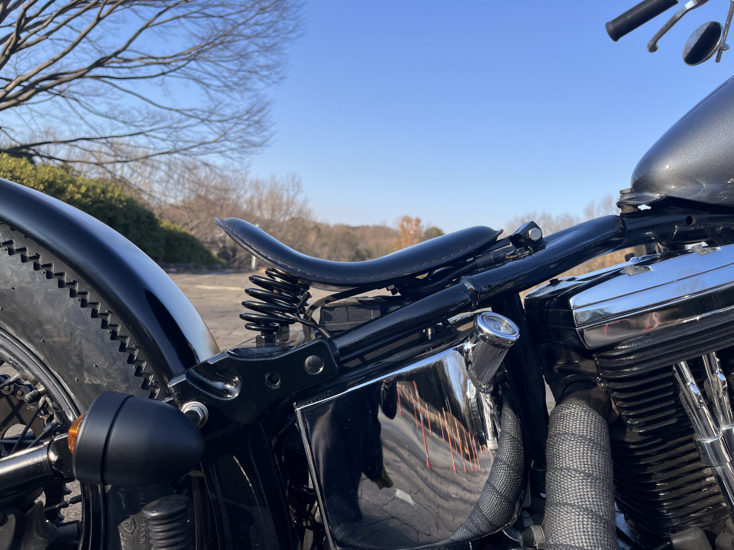 しかし実際にはサスペンションはしっかりと残されているため、見た目はハード、乗り味はソフトという、チョッパーらしさと快適性を両立したスタイルです。